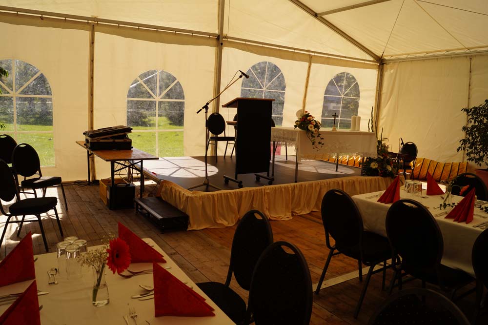 Da die Zelte beheizbar sind, können Sie Ihre Veranstaltung ohne Weiteres auch in der kalten Jahreszeit planen. Küchen- und Schankeinrichtung, Stromversorgung und weiteres Zubehör liefern wir mit.