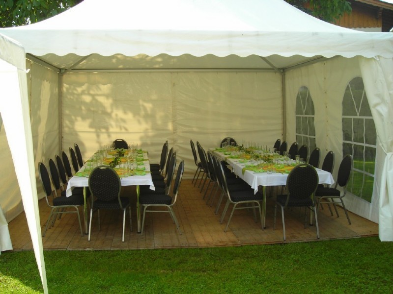 Die hochwertige Innenausstattung wertet unsere Zelte optisch auf und sorgt für Komfort auf allen Ebenen. Auf Wunsch organisieren wir auch ein zu Ihrer Veranstaltung passendes Dekor. Schicken Sie uns eine unverbindliche Anfrage – Wir erstellen Ihnen ein maßgeschneidertes Angebot! Unser Zeltverleih in Salzburg liefert Ihnen Zelte, Tische, Stühle, Bodenbeläge und alles, was Sie an Zubehör für Ihre nächste Feier brauchen.